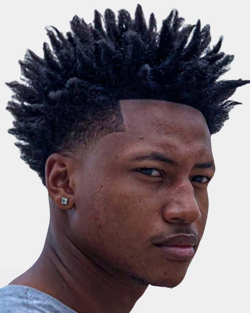 The high-top fade was big in the 80s and is back with a vengeance. It features a voluminous crown with tight, tapered sides that create a structured, almost squared-off shape. It is perfect for those with dense, Type 4 hair who want a throwback look with a modern edge.