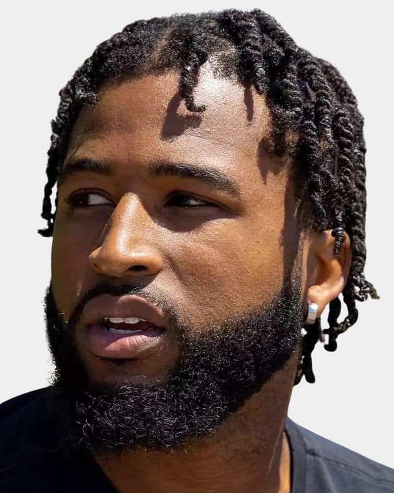 This style combines clean, low-maintenance sides with playful texture up top. Twists are easy to install and style, while the fade keeps everything sharp. We’d recommend opting for a low or temple fade to ensure all the focus remains on the twists themselves.