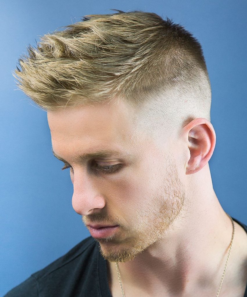 This added length is still short, but sufficient in order to be styled into a small quiff, combed to the side or tousled and styled forwards into a short crop. A fade can also be incorporated to smooth the transition between the two lengths.