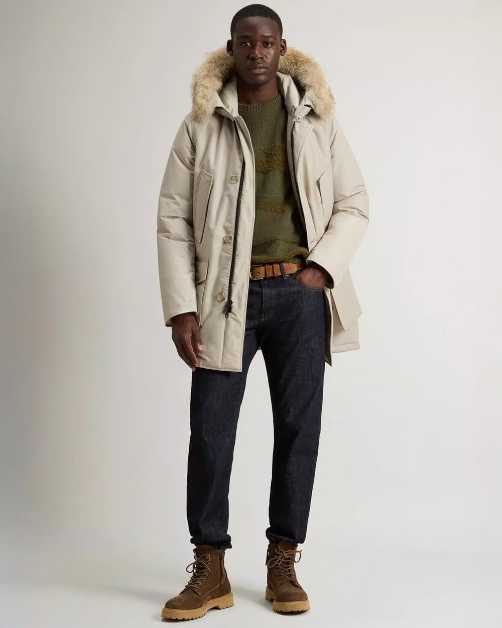 A coyote fur (faux or responsibly sourced) hood will keep biting winds away from the face while maintaining vision, and won’t freeze in sub-zero temperatures. Similarly, drawstrings at the waist and cuffs are not only great for bringing shape to your silhouette but will keep the cold out and the warmth in.