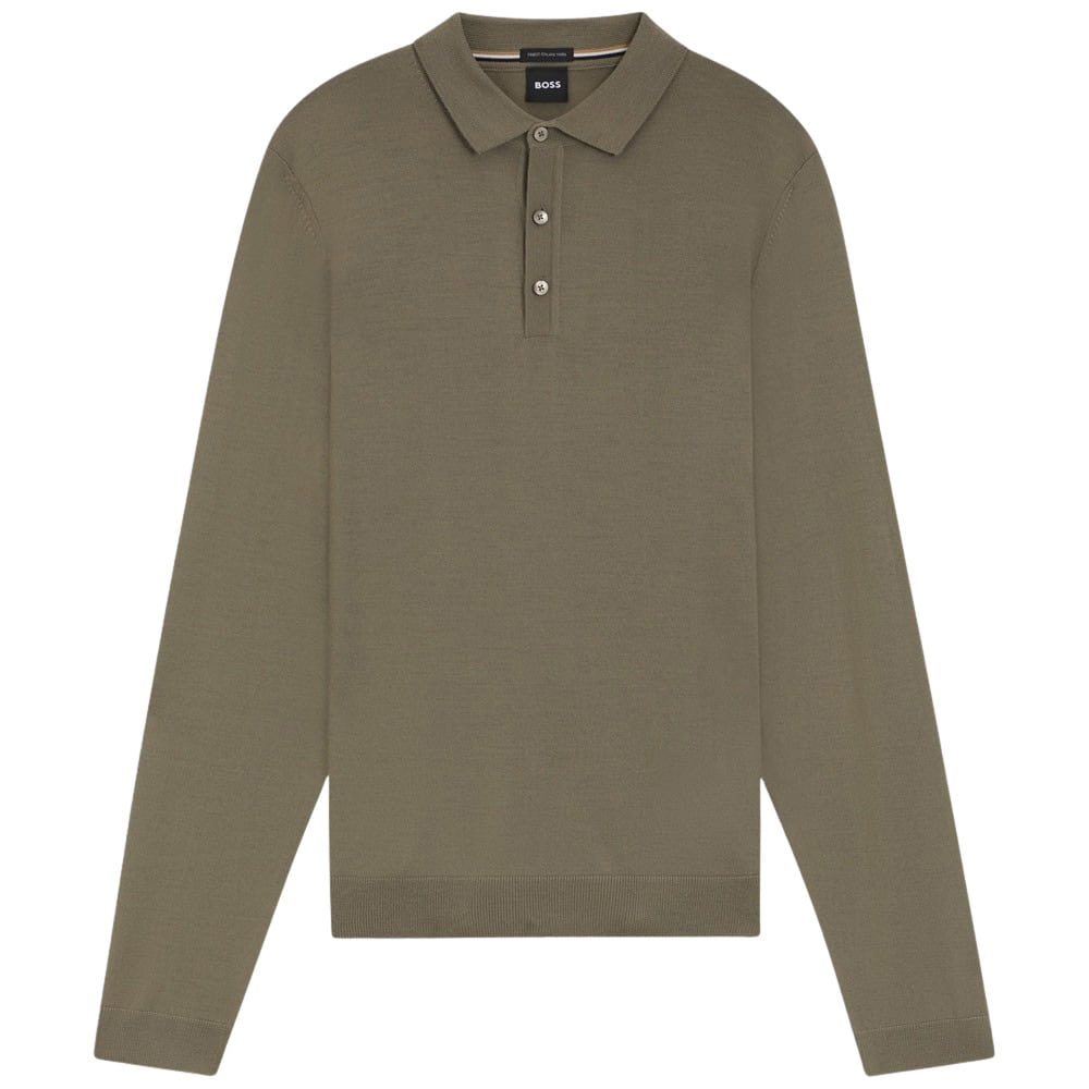 - BOSS Long-sleeved knit polo sweater in Italian virgin wool