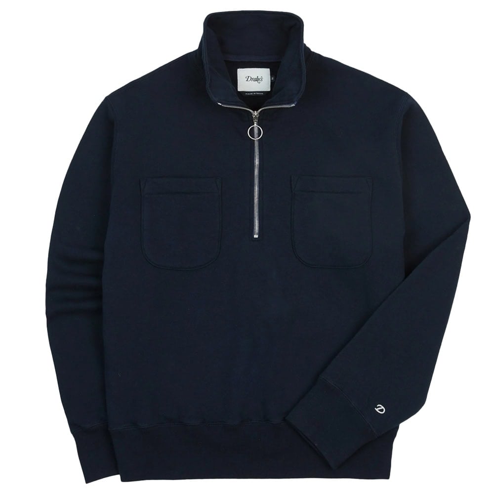 - Drake’s Navy Cotton Half-Zip Collared Sweatshirt