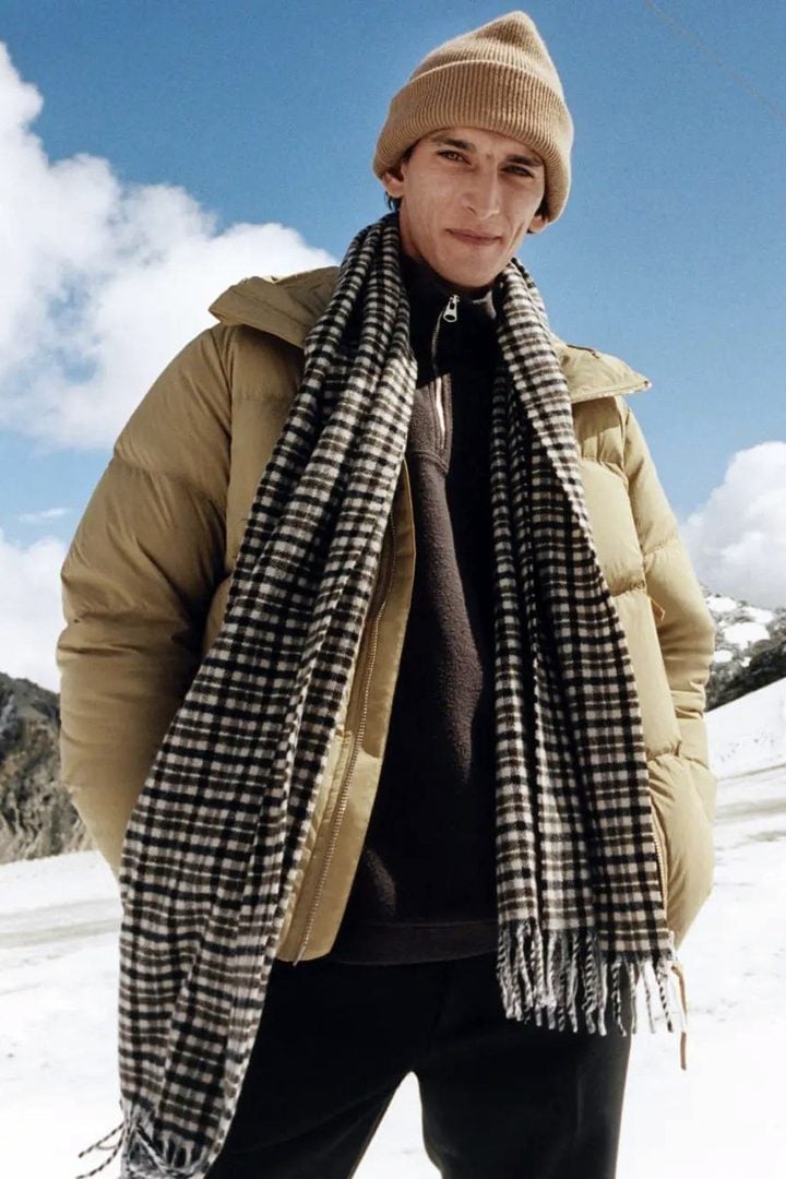 Workwear staples like overshirts, denim jackets and raw selvedge denim speak to the fisherman beanie’s blue-collar roots and will always work well. Keep your fabrics heavy and textured, and colours muted and earthy.