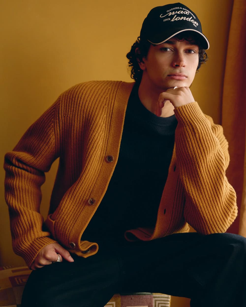 - Wax London Walker – Ochre Rib Stitch Knit Cardigan