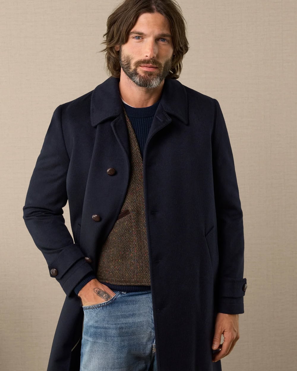 - Corneliani Navy Blue Super Fine Wool Beaver Coat