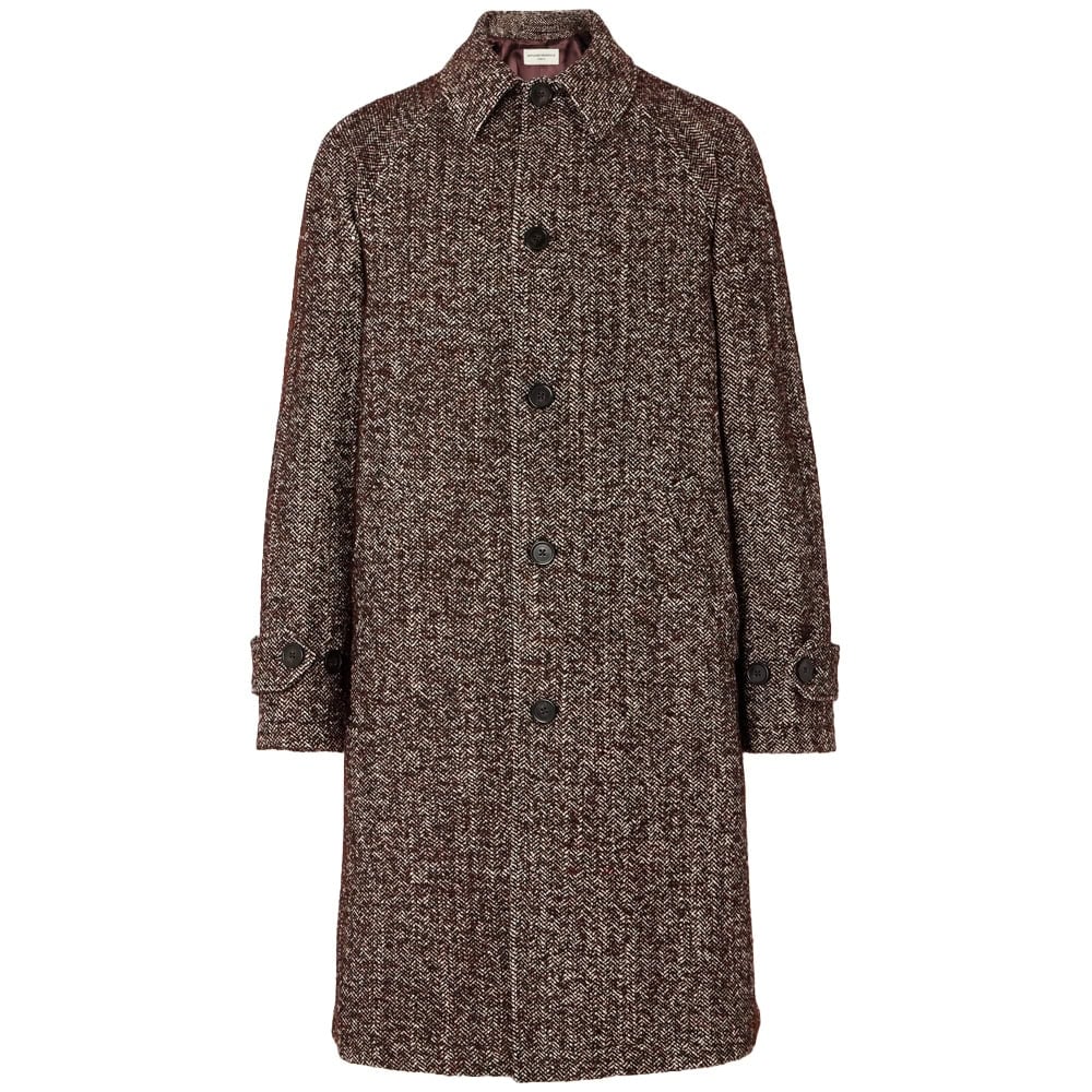 - Wax London Magnus – Brown Herringbone Double-Breasted Wool Overcoat