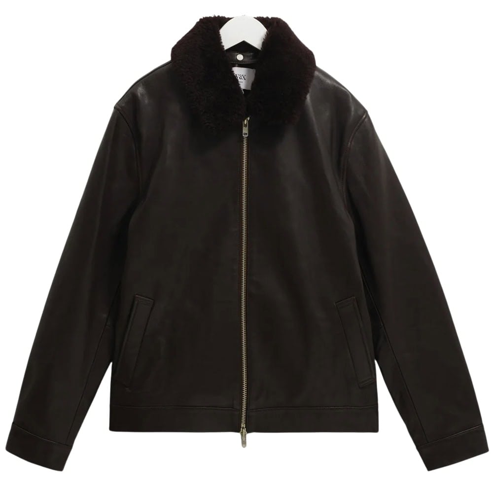- Wax London Kendal – Dark Brown Lamb Leather Flight Jacket