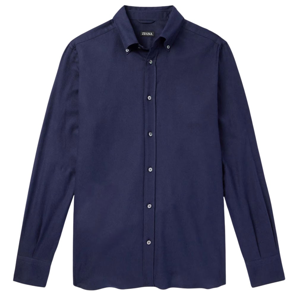 - ZEGNA Button-Down Collar Brushed Cotton Shirt