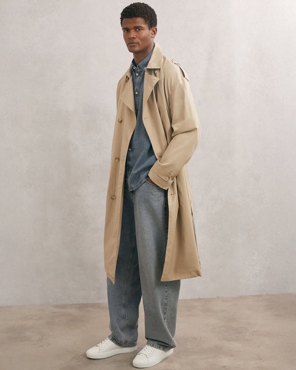 A classic piece of British rainwear and as slouchy as they come. Trench coats are cut big on purpose so that they can fit comfortably over a tailored jacket. It’s a style of overcoat built with inclement weather in mind – designed to keep what’s underneath clean and pristine while still looking the part itself.
