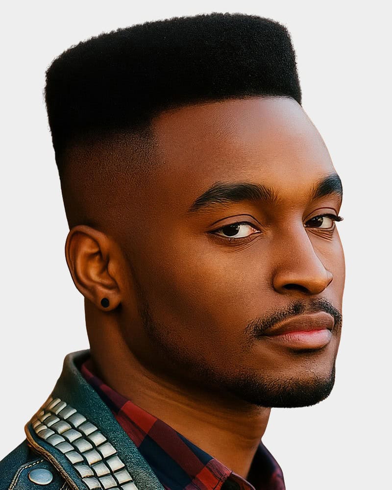 The high-top fade was big in the 80s and is back with a vengeance. It features a voluminous crown with tight, tapered sides that create a structured, almost squared-off shape. It is perfect for those with dense, Type 4 hair who want a throwback look with a modern edge.