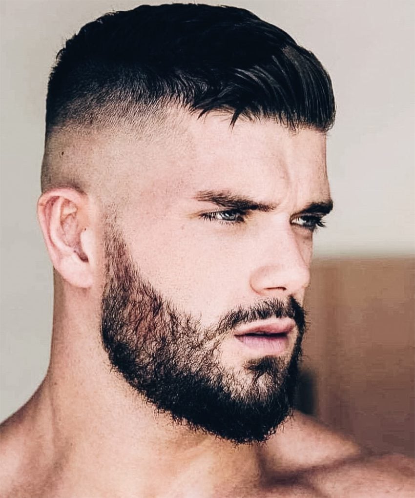 This is the high and tight in its purest, simplest form. It’s buzzed down to the skin on the back and sides of the head and left very slightly longer on top. This variation is so short that it requires little to no styling and makes an excellent option for anyone who likes the low maintenance of a buzz cut but wants some degree of variation in length.