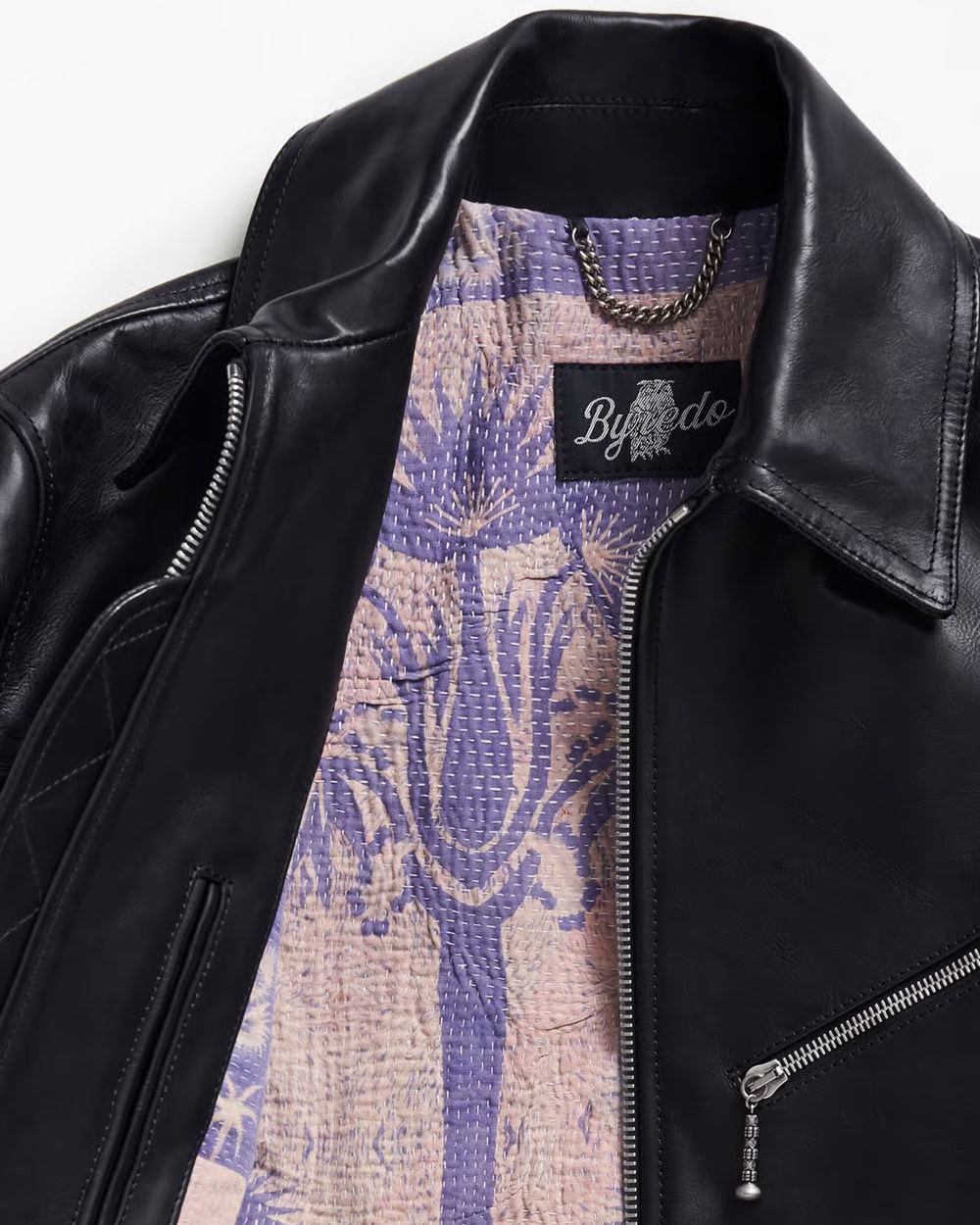 Byredo, best known for its cult fragrances, is flexing its design muscle with Byproduct, the brand’s experimental arm. The standout? The Rizon leather jacket: vegetable-tanned calfskin on the outside, lined with a hand-quilted cotton Kantha blanket (each one unique).