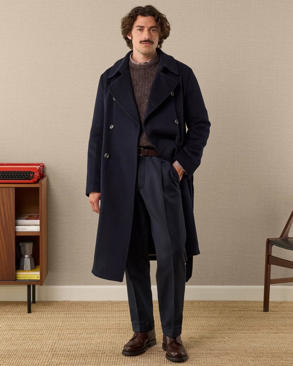 There are few things less enjoyable than enduring a soaking on the way to the office and having to spend the rest of the day in a sodden suit. Finding a suitable top layer that effectively pairs with tailoring can present a challenge but the overcoat provides a foolproof solution.