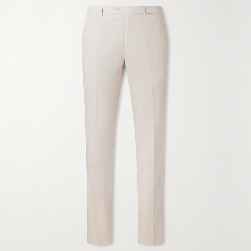 The Italian master of understated luxury, Brunello Cucinelli never fails to deliver relaxed elegance using the finest fabrics. These beige slim-fit chinos are crafted from a stretch-cotton twill and are the perfect dance partner for relaxed summer tailoring.