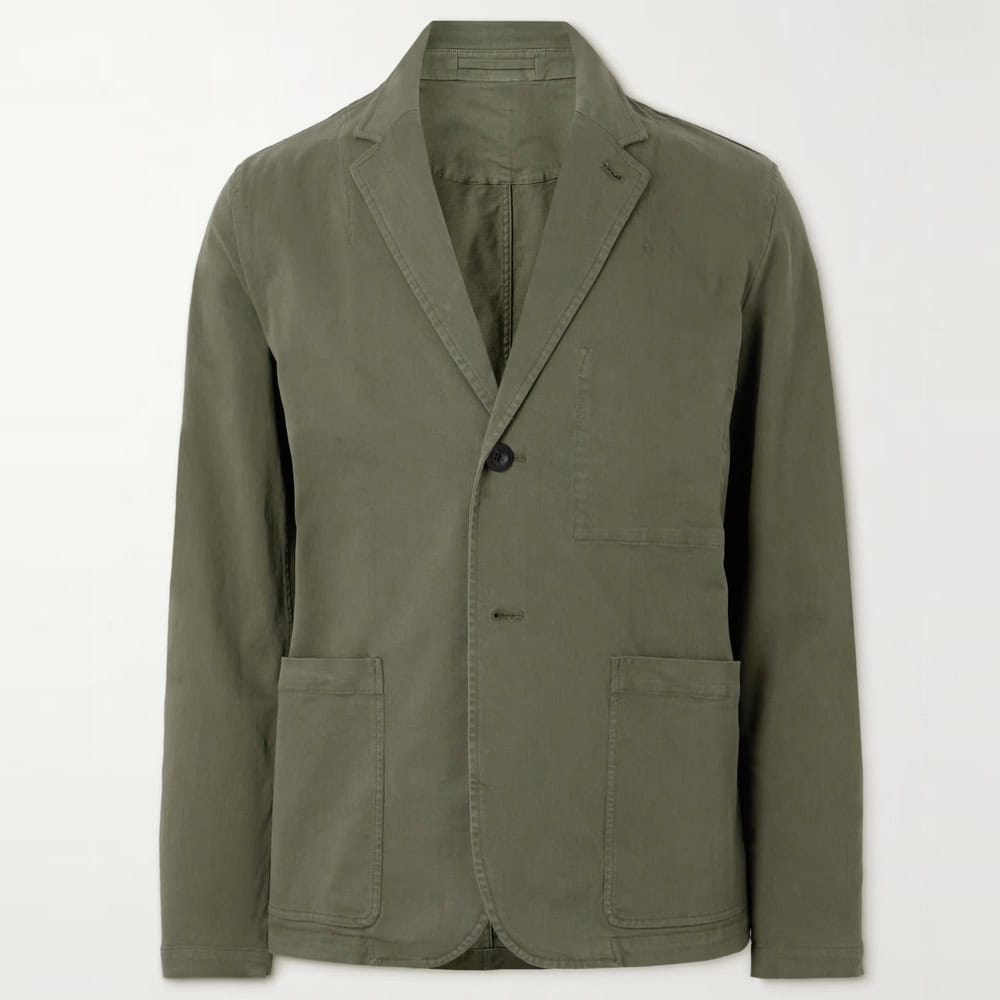 With a relaxed aesthetic thanks to its garment-dyed, worn-in charm, Mr P’s cotton-blend twill blazer comes as part of a suit but is also the perfect separate jacket for spring and autumn. Relaxed and unstructured for a natural drape, you can layer it over a striped rugby top with chinos and deck shoes for a slick, modern preppy look.