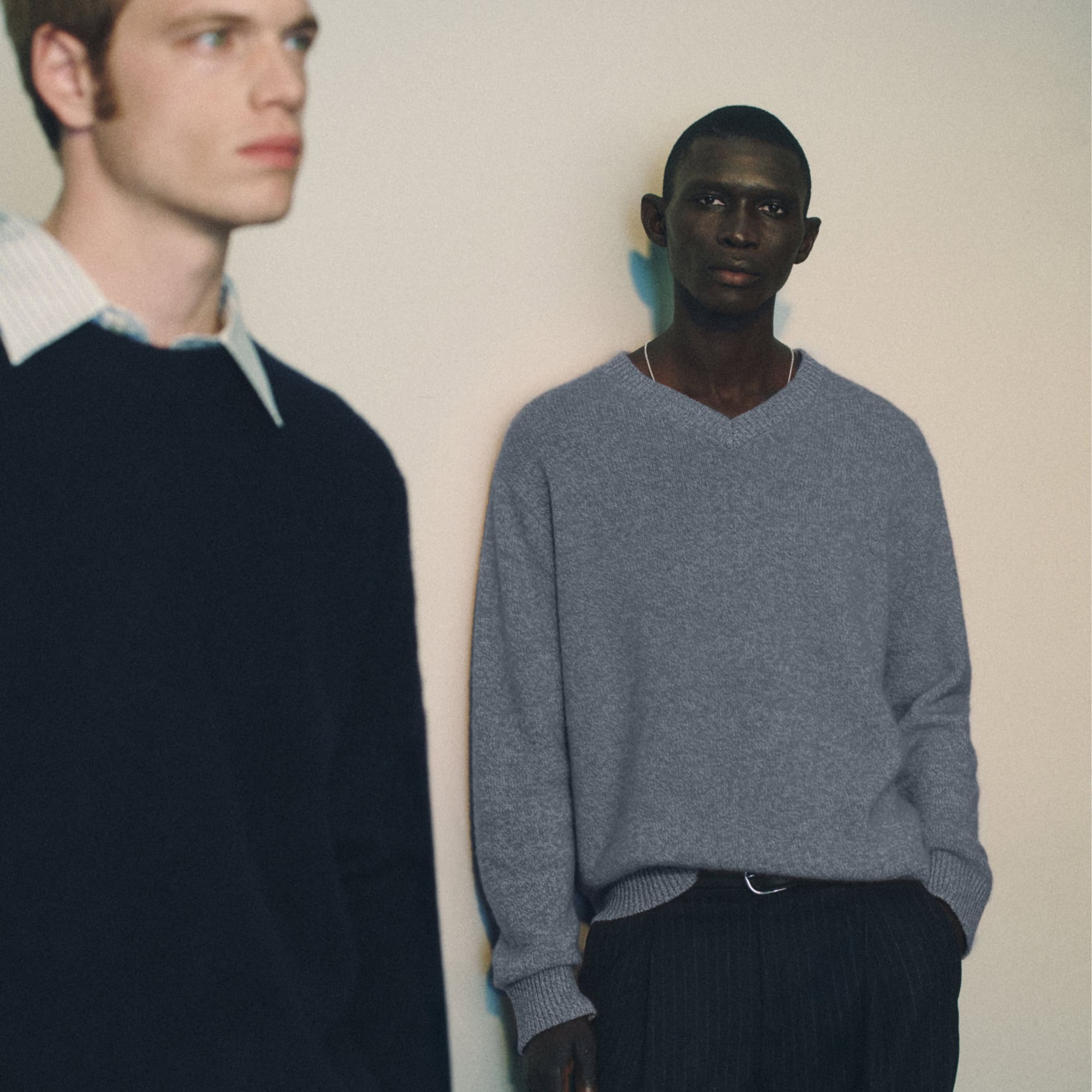 As for the palette, mix it up. Bold crew necks are a great way to inject life into an understated ensemble, while neutral tones with flecks of colour add even more depth.