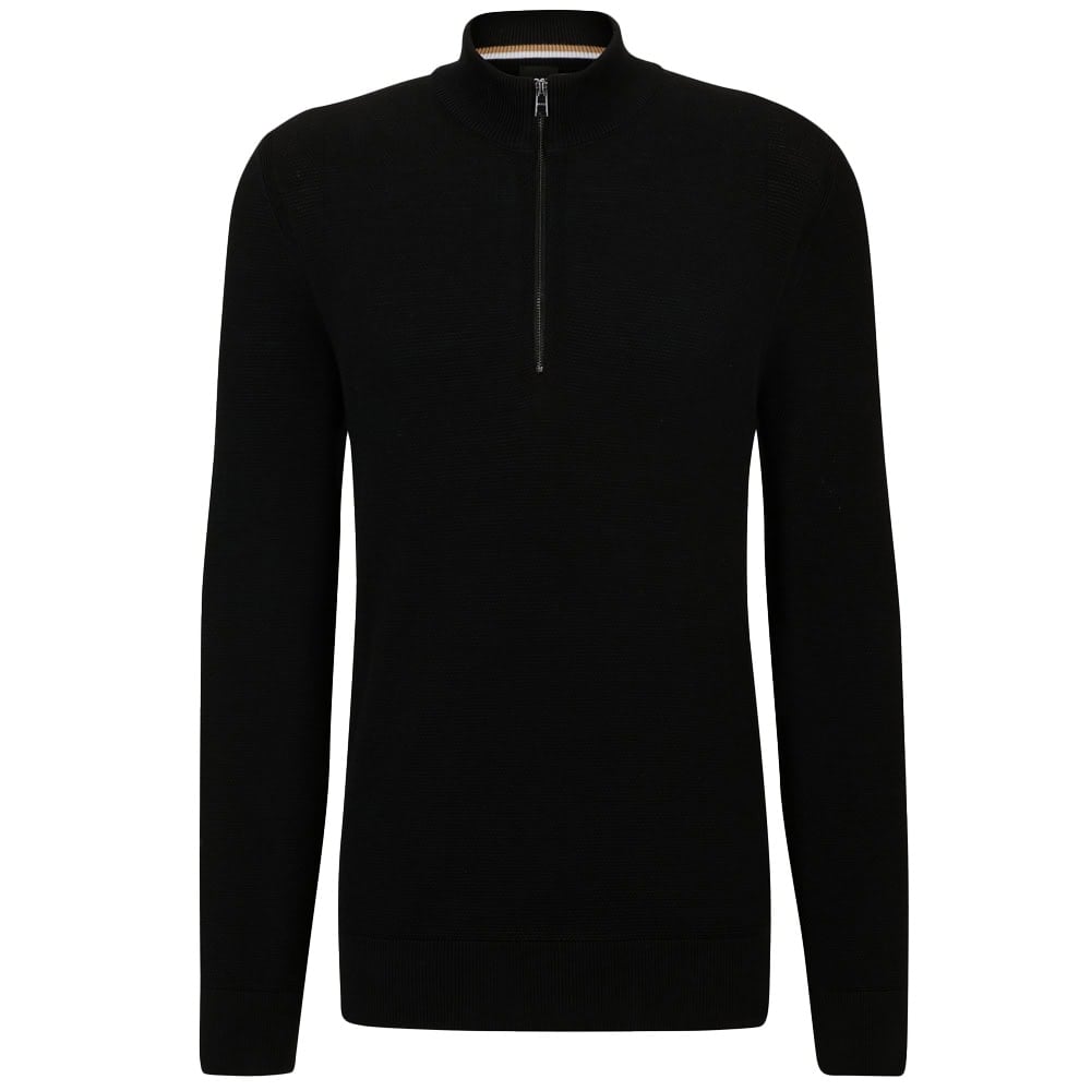 - BOSS Quarter-zip cotton sweater with knitted structure