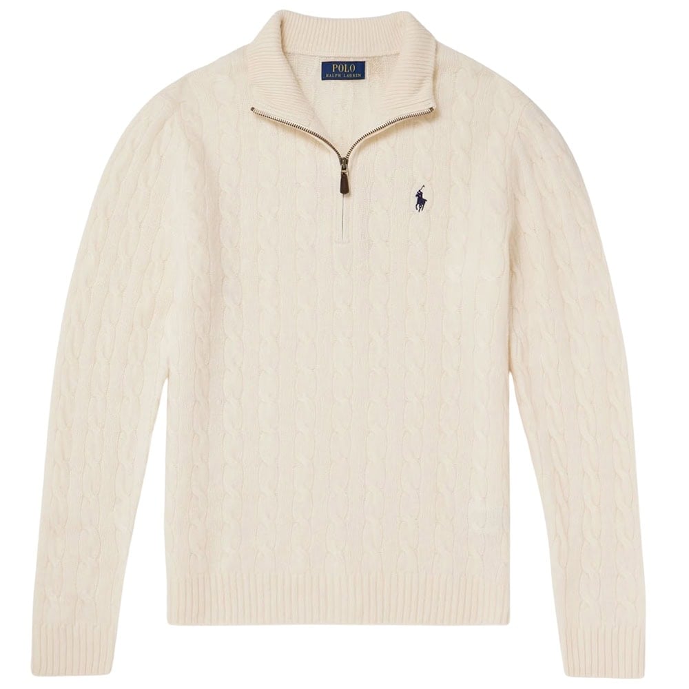 - Polo Ralph Lauren Logo-Embroidered Cable-Knit Wool and Cashmere-Blend Half-Zip Sweater