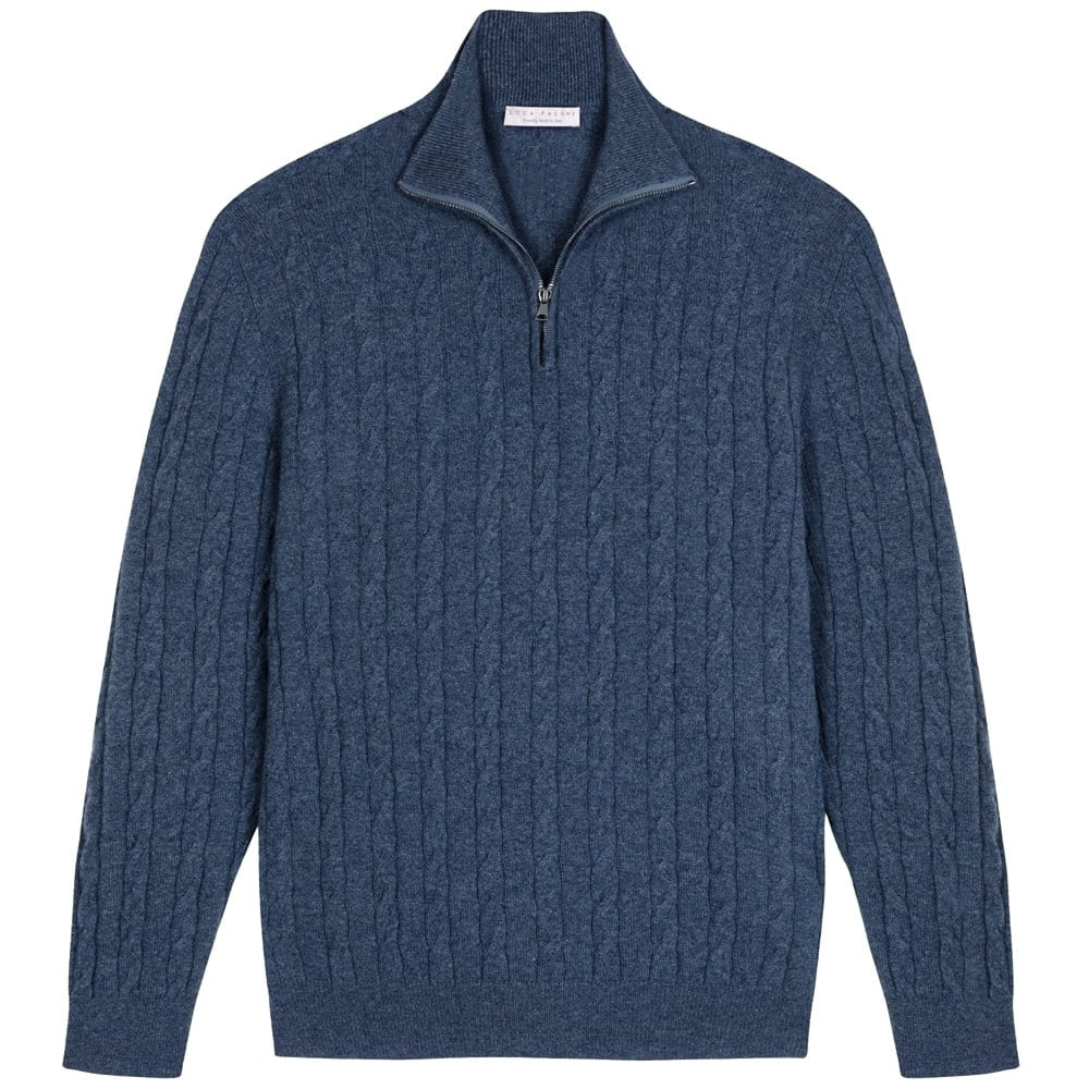 - Luca Faloni Cable Knit Zip-up 2-Ply Cashmere
