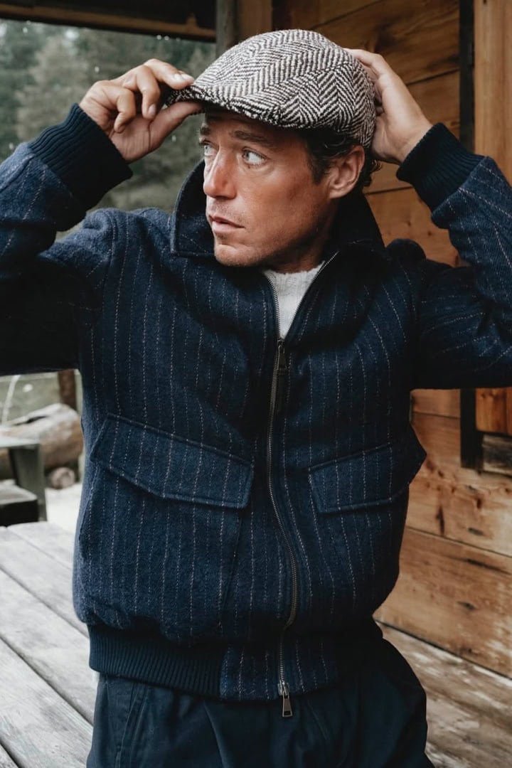 Be careful not to get too carried away with the old-timey aesthetic when styling a flat cap. Remember, this isn’t Peaky Blinders cosplay. Forgo tweed waistcoats and sport coats in favour of modern-classic pieces. Think button-up shirts, unstructured blazers, roll necks, knitted polo shirts and jeans.