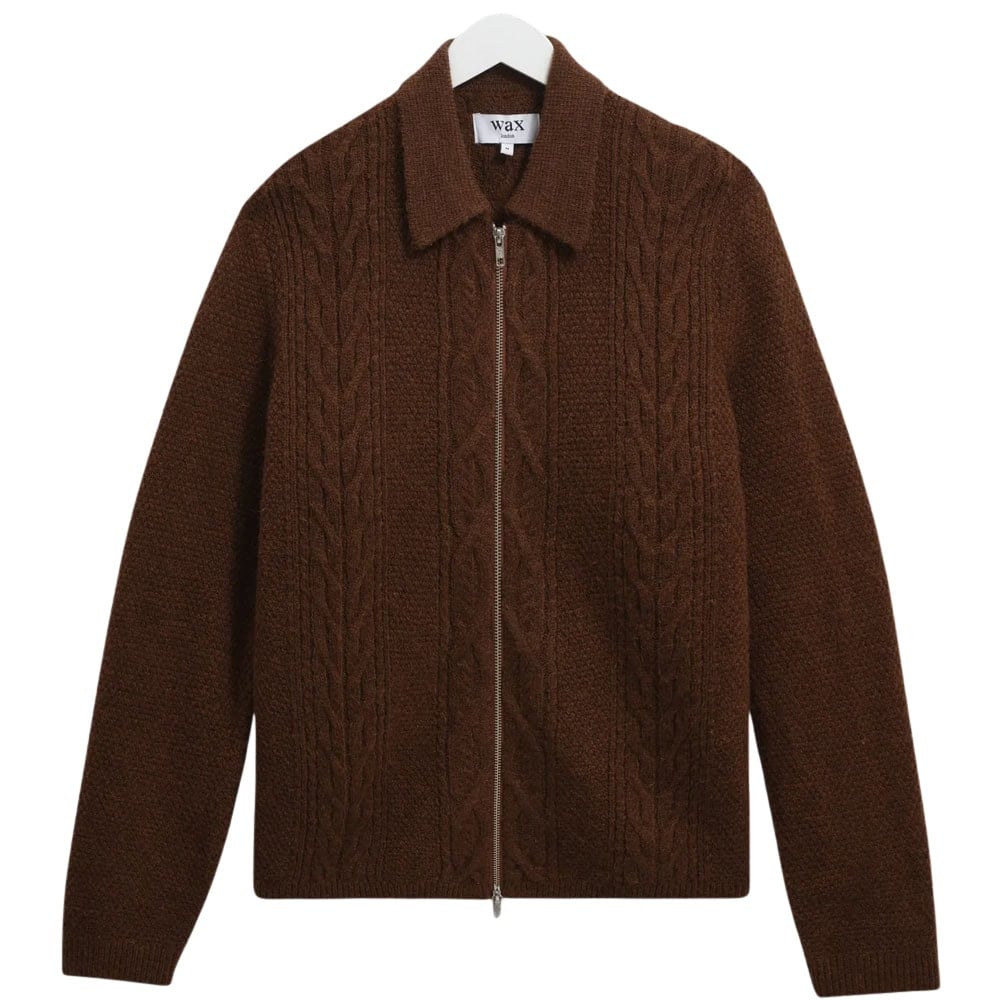 - Wax London Friar – Brown Brush Cable Knit Zip Cardigan