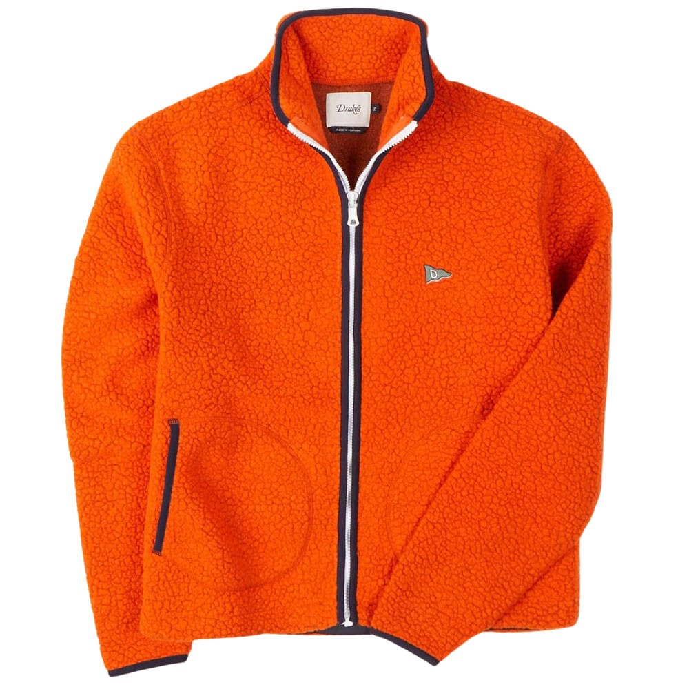 - Drake’s Orange Boucle Wool Zip Fleece Jacket