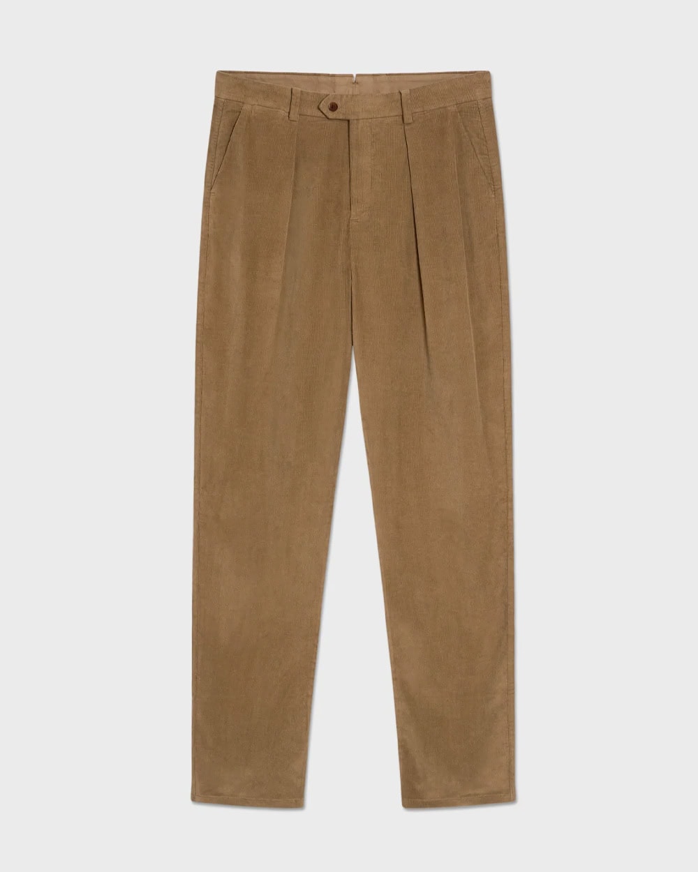 The pleated, high-rise trousers add a tailored sharpness you don’t get from chinos, and the earthy tone makes them surprisingly easy to pair with rich knits and polished leather loafers. Rolled hems soften everything and stop the outfit tipping into overly formal territory.