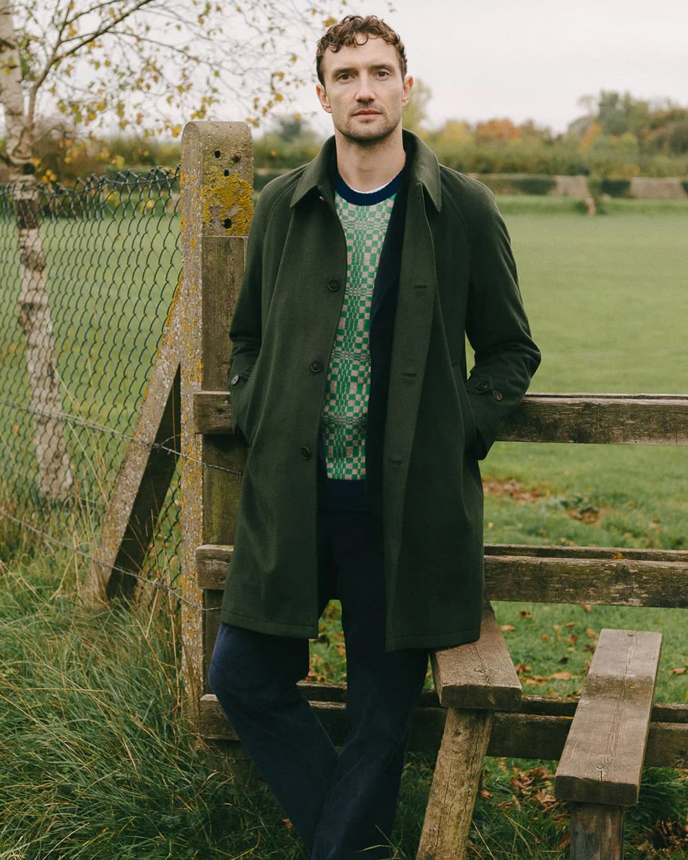The trick with this one is to steer clear of anything with too much structure to the shoulders – that’s just going to look off when you pair it with casual clothes. Instead, go for something with sloping shoulders for a more relaxed look. A balmacaan is great, as it has raglan sleeves with seamless shoulders that drape naturally and don’t look too stiff.
