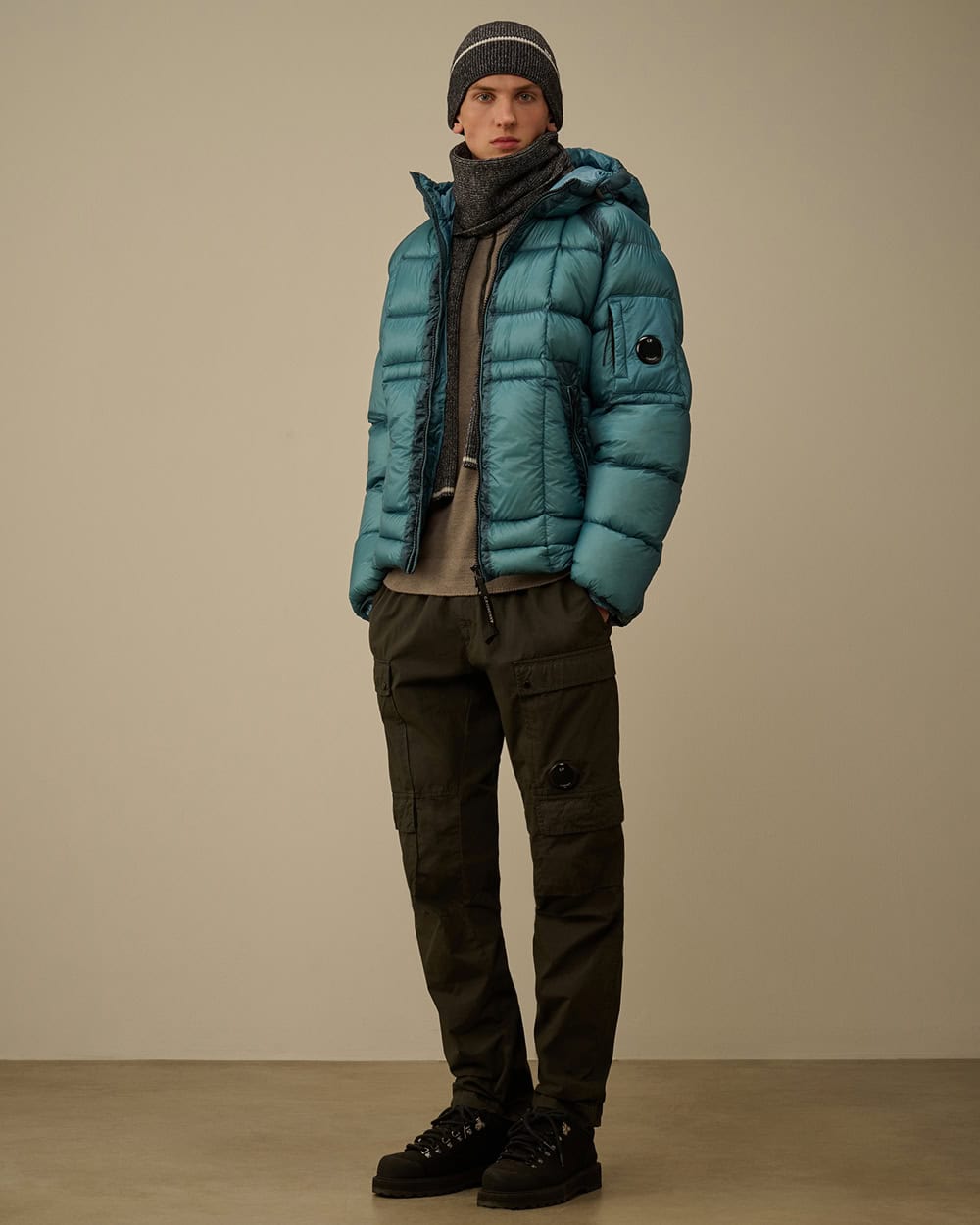 If you’re struggling to picture it, CP Company’s DD Shell jacket is a great example. It’s a super-puffy down parka that uses incredibly thin nylon as its outer, leaving the internal stitching and the down partially visible from the outside.