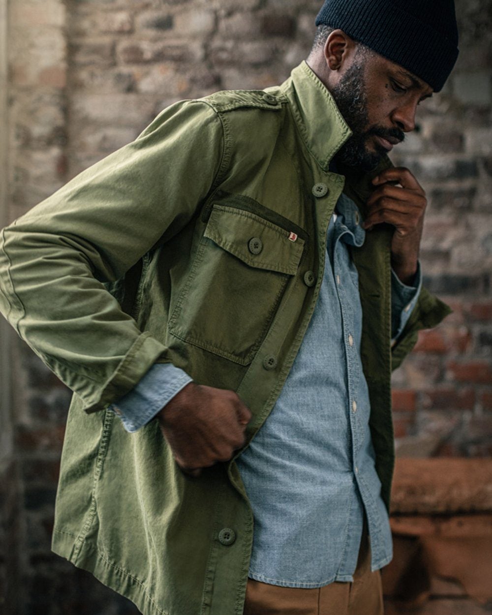 Atten-hut. Here’s an affordable way to add something different to your shirting rotation. Head to your nearest vintage or surplus store and pick up a classic army shirt in olive green. Designed for heavy wear – like, battlefront heavy – they make for a practical cold-weather layer and offer structured, masculine styling.
