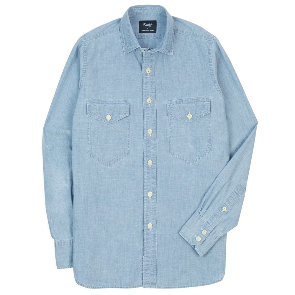 - Drake’s Blue Cotton Chambray Two-Pocket Work Shirt